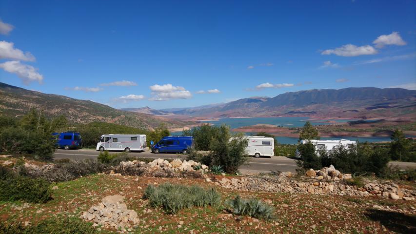 Dort besuchten wir am Mittag die beeindruckende und bekannte Ksar Ait Benhaddou. Von ganz oben hatte man einen fantastischen Blick auf die Landschaft und die Berge des hohen Atlas Nach einem späteren Einkaufsbummel durch die gepflegte Stadt Ouarzazate fuhren wir für die Nacht an den nahe gelegenen Stausee. |