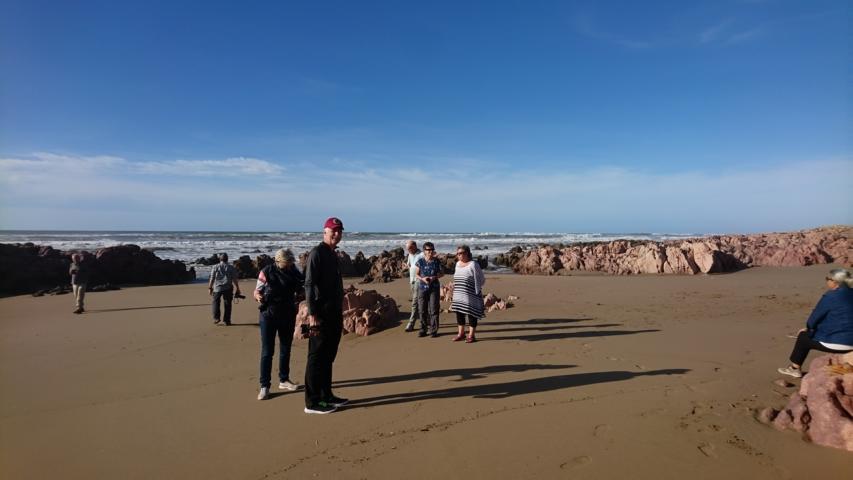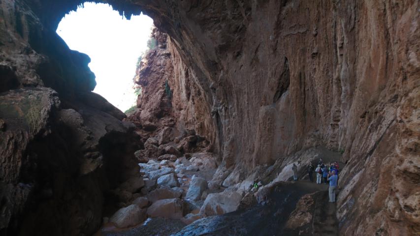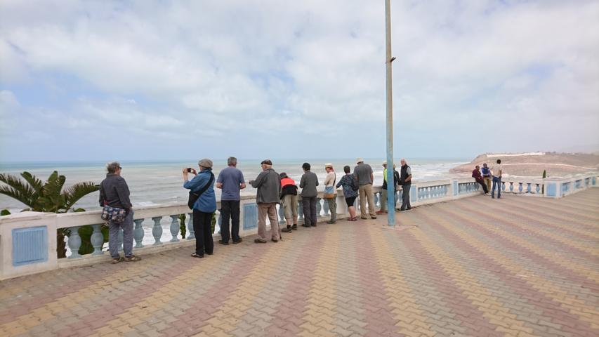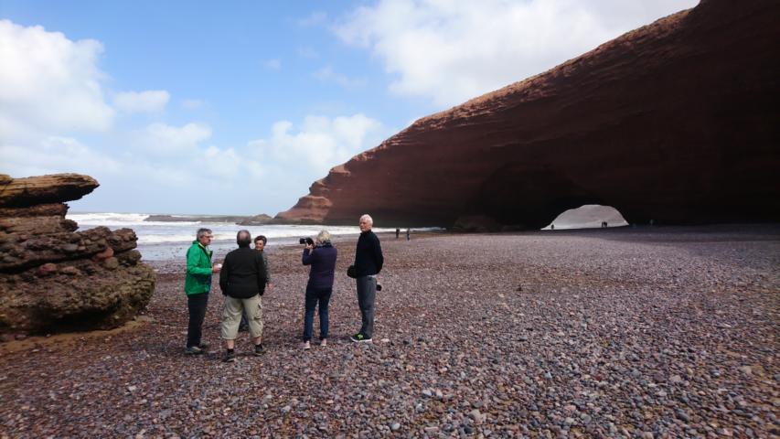 Bei einem Strandspaziergang bewunderten wir diese eindrucksvolle Natur-Felsenbrücke Anschließend fuhren wir weiter zu der schönen spanischen Hafenstadt Sidi Ifni und schauten dort das letzte Mal auf die Wellen des Atlantic Nach einer Mittagspause in der spanischen Stadt fuhren wir weiter über die letzten Ausläufer des Anti Atlas in die Wüste in die kleine Oase Abbaynou. Am Abend genossen wir noch bei einem Schwimmbad Besuch die heißen Thermalquellen der Oase