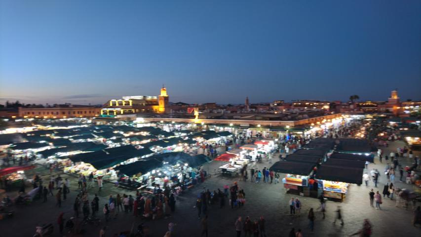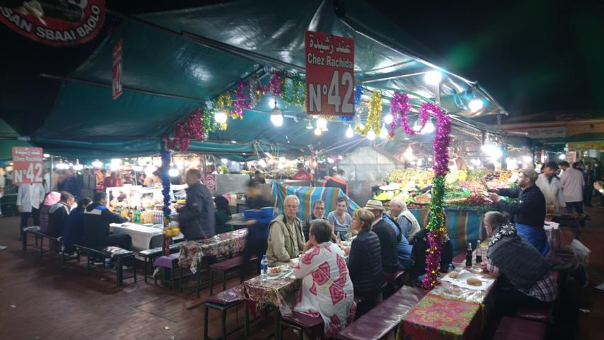 Nach einer kleinen Klettertour durch die faszinierende Höhle fuhren wir weiter nach Marrakesch. Am Abend brachten uns dann die bestellten Taxen vom Camping zu den Garküchen am Jema el Fna |
