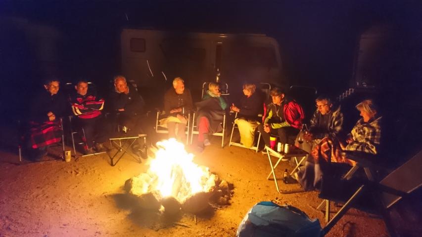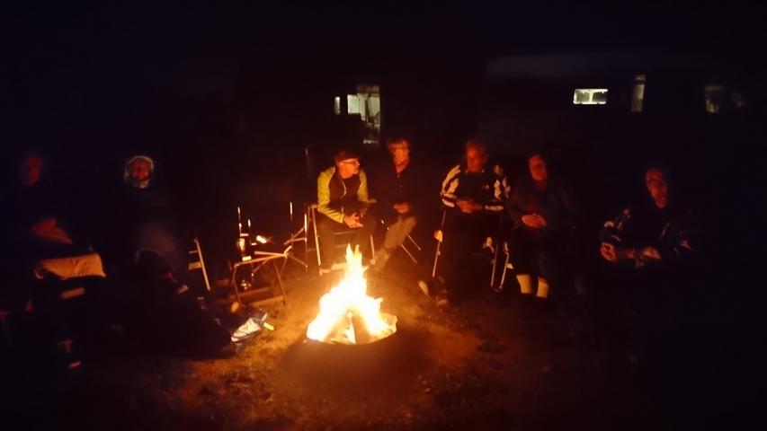 Leider hatte der Wind zugenommen und wir verkrochen uns ohne Feuer in der Wagenburg