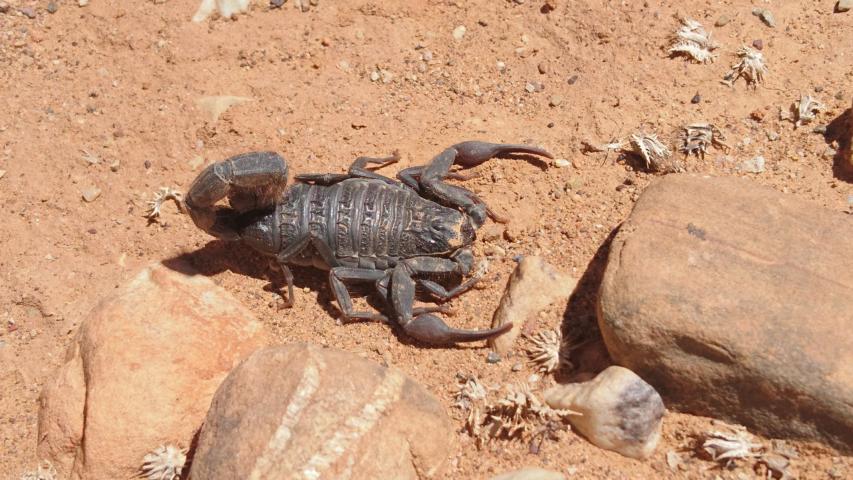 Ein großer Skorpion lief uns vor die Füße und wurde natürlich von allen Teilnehmern mit einer Fotosession begrüßt. Nach diesem aufregenden Erlebnis besuchten wir die ebenfalls sehr imposante Speicherburg Amtoudi. Der Aufstieg wurde mit einer besondern Aussicht und einer Führung durch die Agadir belohnt Am Nachmittag fuhren wir dann noch ein kurzes Stück zu dem schönen Camping Borj Biramane und ließen uns am Abend von dem Restaurant mit Kamelfleisch Tajine verwöhnen |