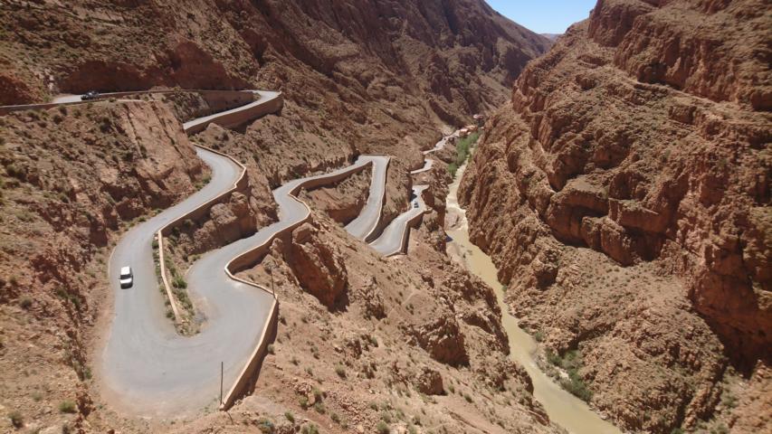 Auf dem Weg Richtung Dades Tal machten wir kurz noch einen Kaffeestop in einem Rosen-Cafe' im Rosental. Anschließend ging es auf kleinen Straßen in die Dades Schlucht und wir erlebten die kurvenreiche Fahrt die spektakulären Serpentinen hautnah Nach diesem Erlebnis fuhren wir zurück und übernachteten auf einem sonnigen Camping in der Todra Schlucht. |