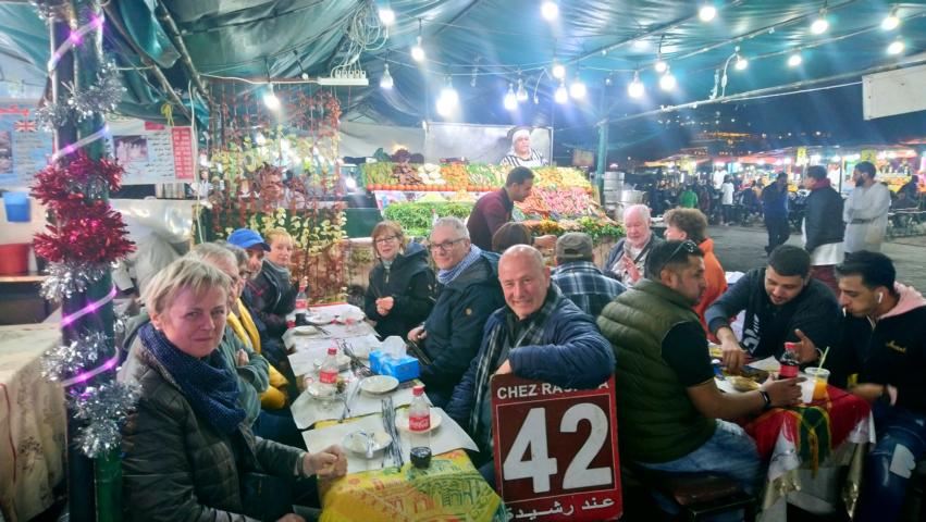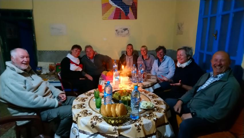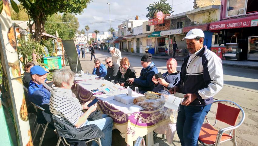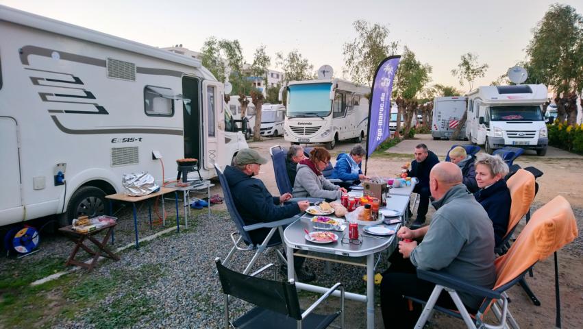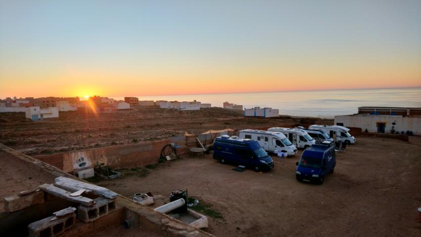 Nach einer ruhigen Überfahrt erreichten wir den Hafen von Tanger Med . Die Zollformalitäten waren schnell erledigt und so fuhren wir zum Badeort Martil. Im Supermarkt Marjane erledigten wir noch die letzten Einkäufe, tankten die Fahrzeuge und weiter ging es zum Campingplatz. Am Abend gab es die Informationsveranstaltung und danach noch eine leckere Tajine mit Hähnchen
