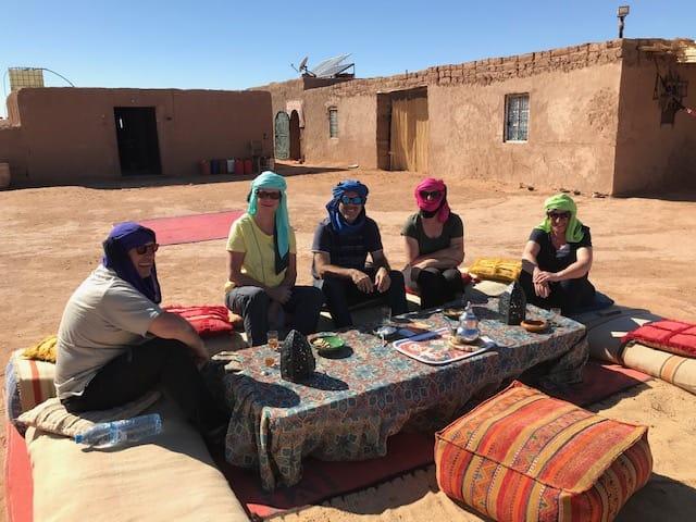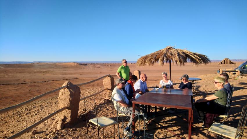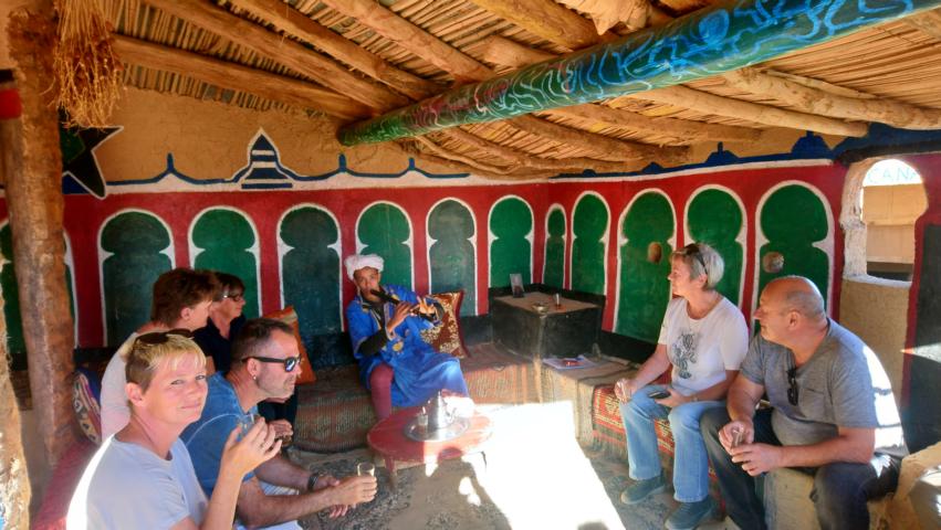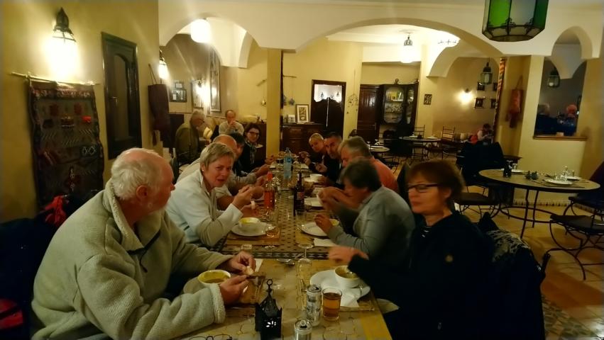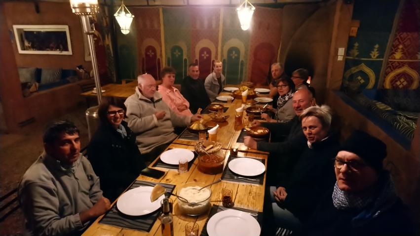 Nach einem kleinen Aufstieg hatten wir die Gelegenheit diese Speicherburg zu besichtigen. Anschließend ging es weiter am Rande der Wüste entlang zu unserem Übernachtungsplatz bei Icht. Das Offroad-Camp Borj Biramane erwartete uns schon mit einer leckeren Kamelfleisch-Tajine im schönen Camping Restaurant |