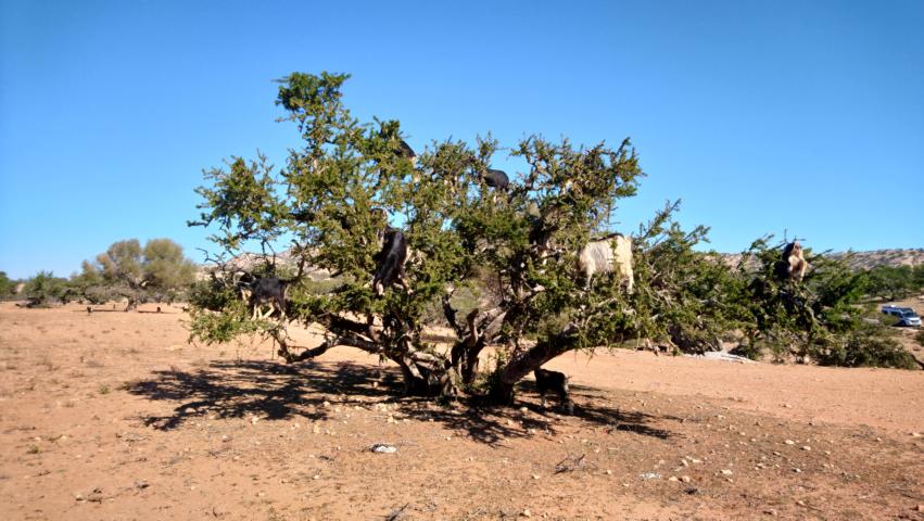 Anschließend machten wir uns auf den Weg, die flinken Ziegen auf den Arganbäumen zu erwischen. Weiter ging es dann auf der Straße der Arganbäume Nach Point Imsouane. Am Schönen Strand verbrachten wir die Mittagspause und fuhren dann weiter nach Agadir.