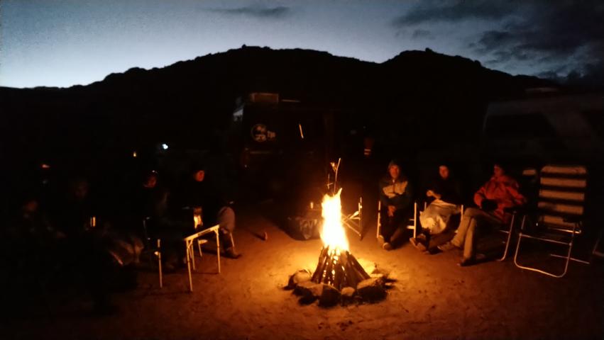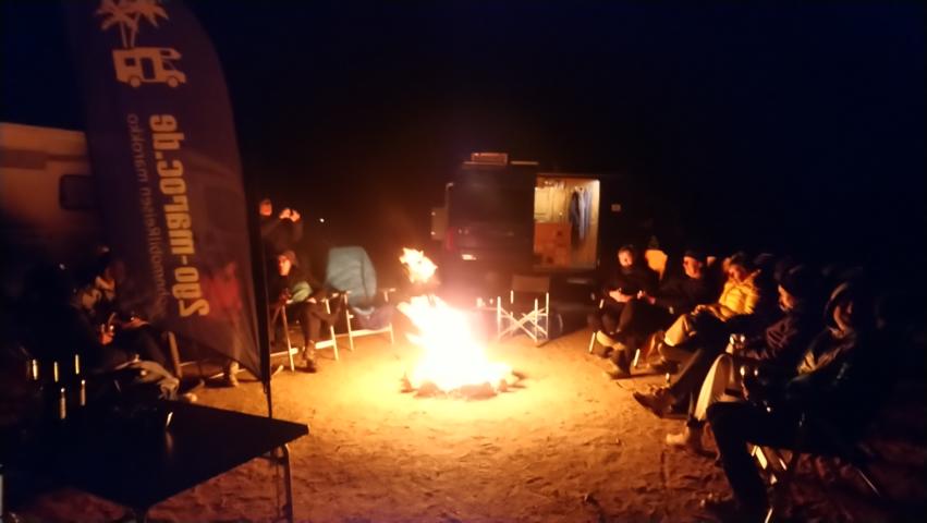 Ein kleiner Einkaufsbummel und schon fuhren wir weiter auf den kleinen Straßen, um schwindelerregende Pässe und tiefen Schluchten zur Oase Tagmoute. In einer einsamen und menschenleeren Hamada fuhren wir unsere Fahrzeuge wieder zu einer Wagenburg zusammen und genossen am Abend beim Lagerfeuer die sternklare Nacht |