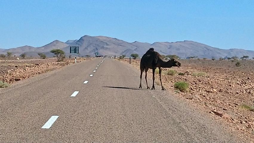 Bei einem Strandspaziergang erlebten wir diese beeindruckende Naturbrücke danach ging es weiter in die ehemalige spanische Hafenstadt Sidi Ifni. Mit einer Mittagspause in den Fischküchen und einem letzten Blick auf den Atlantik verließen wir die Küste und fuhren über die letzten Ausläufer des Anti Atlas zum Tor der Wüste, nach Guelmim. Die Nacht verbrachten wir auf einem Campingplatz nahe der Oase Abbaynou