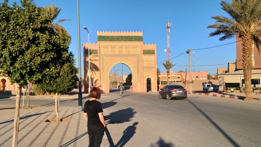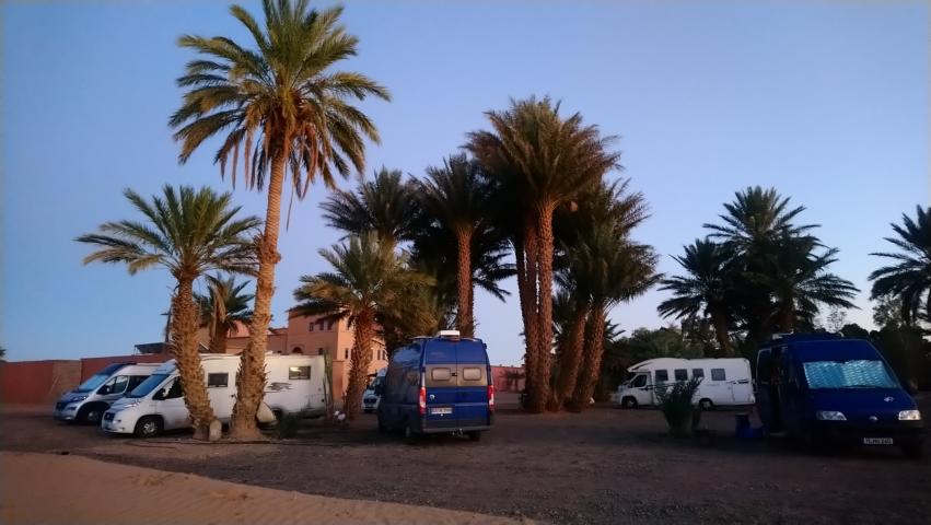Erst erklärte und Zaid in seinem Quellen Museeum seine fantastische Sammlung, danach fuhren wir noch zu einer Oasen Wasserleitung mit Führung und Teepause bei Salem Noch das Stadttor von Rissani fotografiert und weiter ging es zu den hohen Dünen der Sandwüste Erg Chebbi Ein Hotel an den Dünen bot uns Stellplatz, Strom und alle Annehmlichkeiten des Hotels. |