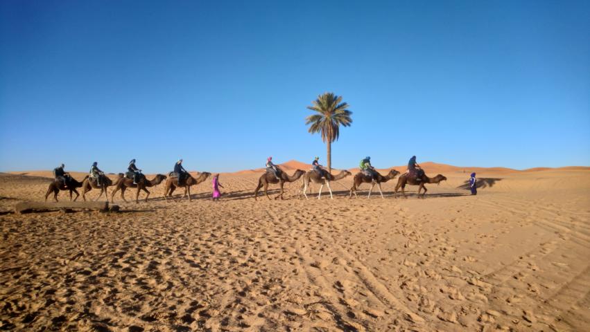 Frühstück auf der Hotel Terrasse und am Abend Kamel Reiten zum Sonneuntergang in die Dünen. Den Tag beschlossen wir dann mit einem letzten Lagerfeuer im Sand |