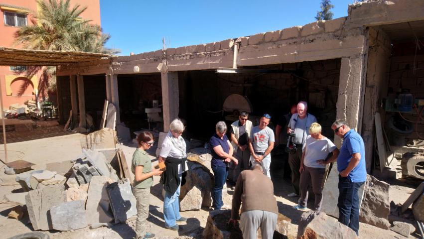 Dort ließen wir uns in einer Fossilien Schleiferei das besondere Handwerk erklären. Am Mittag ging es dann weiter durch das schöne ZiZ Tal zu den blauen Quellen von Meski |