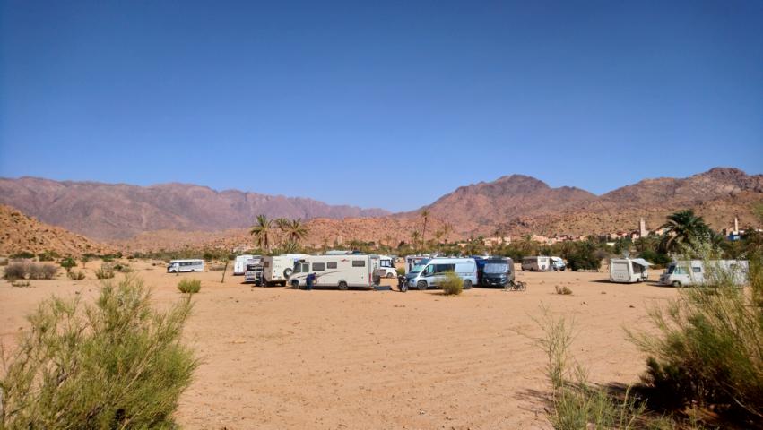 Nach einem kleinen Rundgang durch dieses befestigte Dorf mit Kashba und Agadir fuhren wir zur Filmstadt Ouarzazate. Nicht nur die Filmstudios , auch der neue Supermarkt Carefour im Centrum der Stadt war ein Ausflug wert. Am Abend trafen wir uns dann am nahegelegenen Stausee am Lagerfeuer Camp |