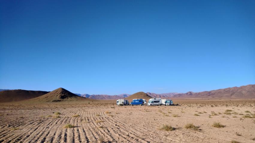 In einer freien Hamda zwischen den Bergen errichteten wir wieder unsere Wagenburg und genossen am Abend den sternenklaren Nachthimmel am Lagerfeuer