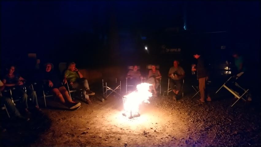 Beeindruckt von diesem herrlichen Naturschauspiel kamen wir am Abend zurück auf den Camping und ließen den Tag bei einem Lagerfeuer ausklingen |
