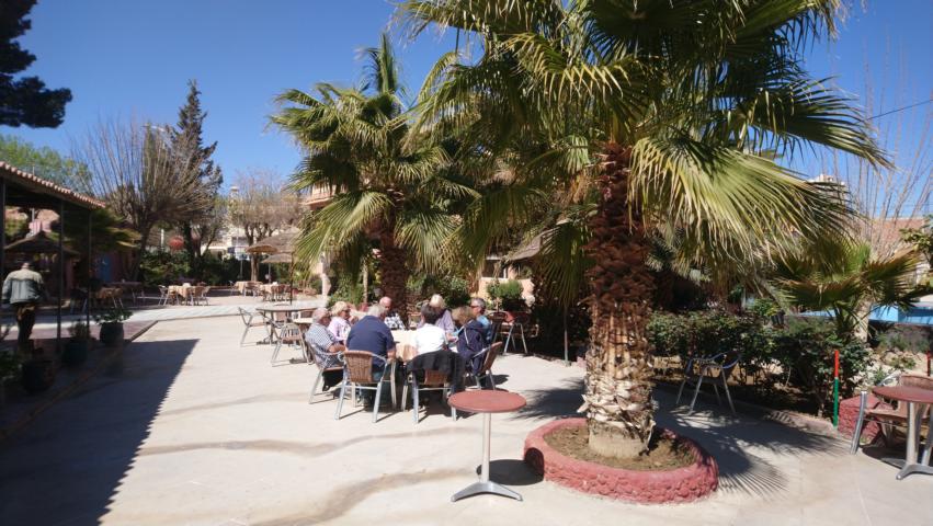 In Midelt machten wir dann eine Mittagspause bevor wir den zweiten Pass über den Mittleren Atlas in Angriff nahmen. Schneefrei führte uns die Straße über den hohen Pass und so kamen wir am späten Nachmittag auf unserem Camping unter Kirschblüten an. Für einige Gäste gab es dann noch die bestellte Forelle zum Abendessen |