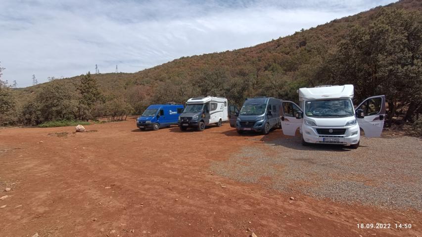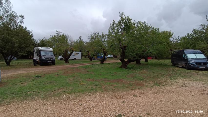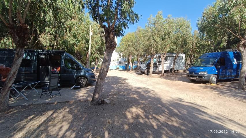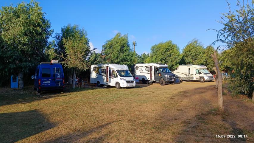 Der schöne Camping an der Lagune ist leider immer noch geschlossen und so errichteten wir eine kleine Wagenburg vor dem Tor des Campingplatz