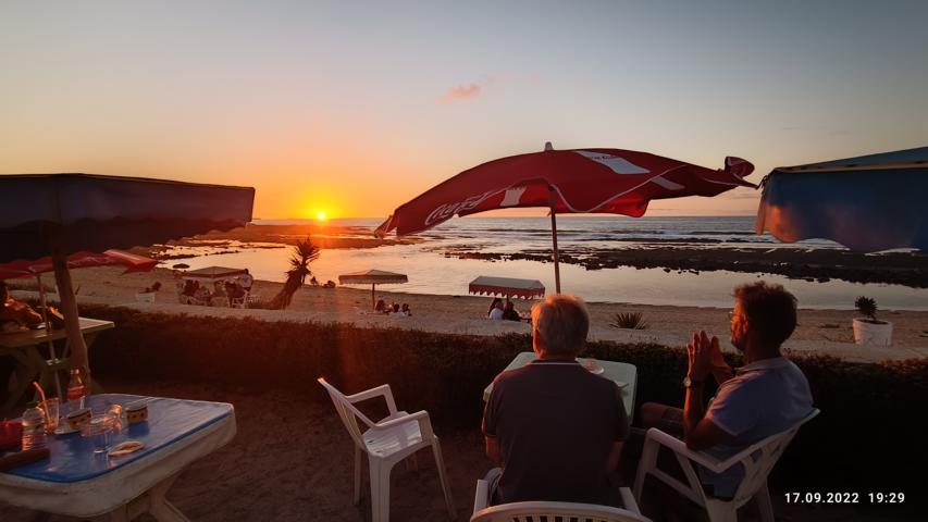 Anschließend fuhren wir weiter über Rabat nach Mohamedia Der Campingplatz Ocean Bleu erwartete uns am Abend mit einem herrlichen Sonnenuntergang am Strand |