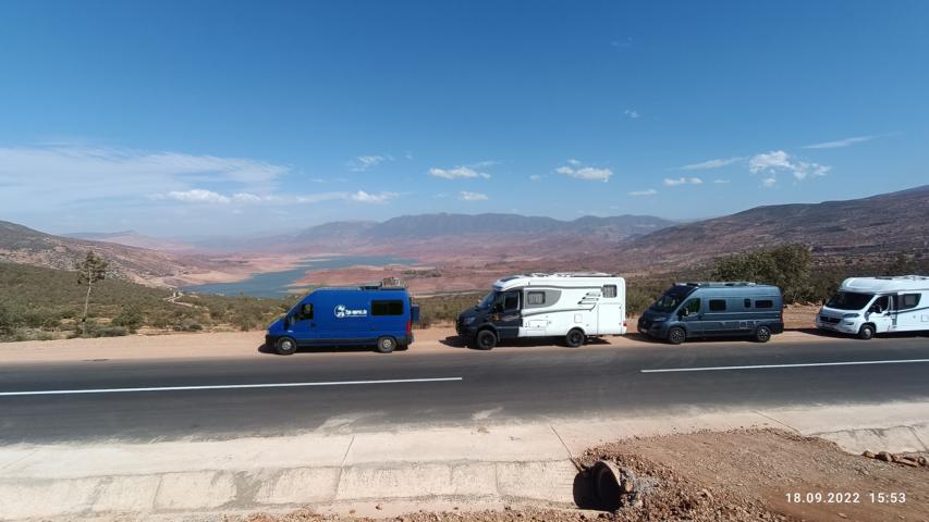 Zur Mittagszeit rasteten wir auf einem schönen Walsparkplatz bevor es weiter über die kurvigen Straßen zum Stausee Bin el Oudiane ging. Nach ein paar Fotostops und weiter auf kleinen Straßen erreichten wir zum Abend den schönen Campingplatz Zebra in Ouzoud Den Abend verbrachten wir dann im gemütlichen Zebra Restaurant |