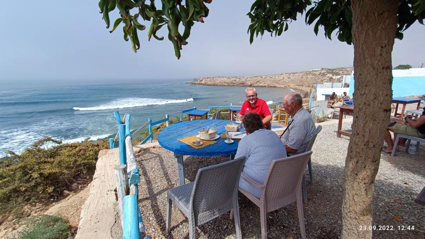 Heute ging es weiter auf kleinen Straßen an den Argan Bäumen vorbei zum Surfer Treffpunkt Point Imsouane Mit Blick auf die Wellenreiter verbrachten wir die Mittagspause und anschließend fuhren wir auf der Küstenstraße Richtung Agadir. Auf einem schönen Camping, kurz vor Agadir, schlugen wir mit Blick auf das Meer unser Abendquartier auf |