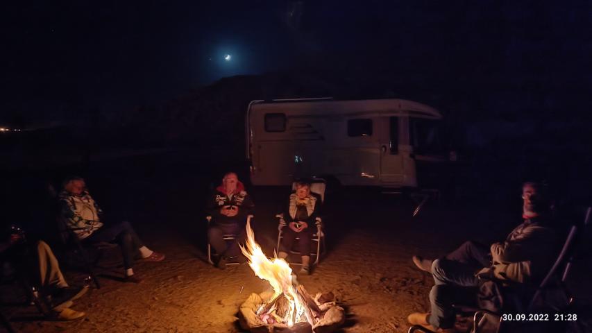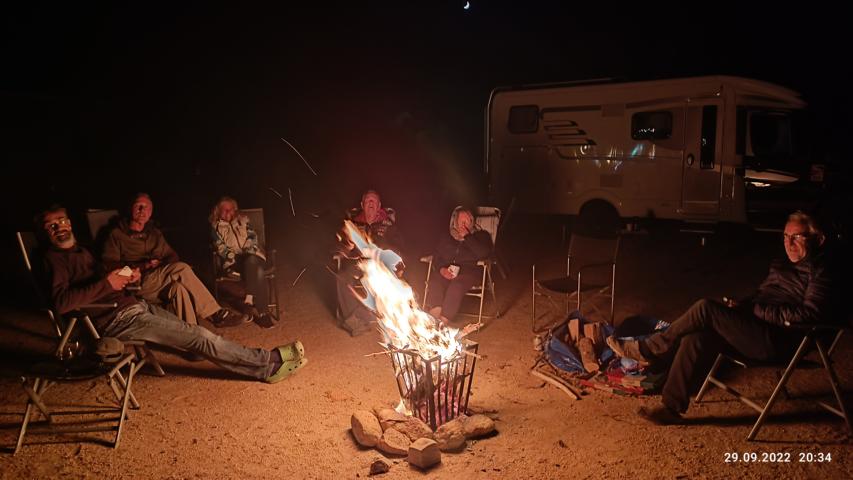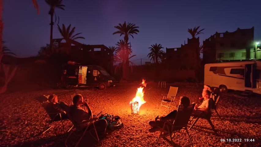 Nach einer Dusche ging es wieder zurück nach Zagorra und weiter am Draa Tal entlang nach Agdez Auf einem kleinen Campingplatz im Schatten der großen Familien Kashba genossen wir den Abend beim Lagerfeuer |